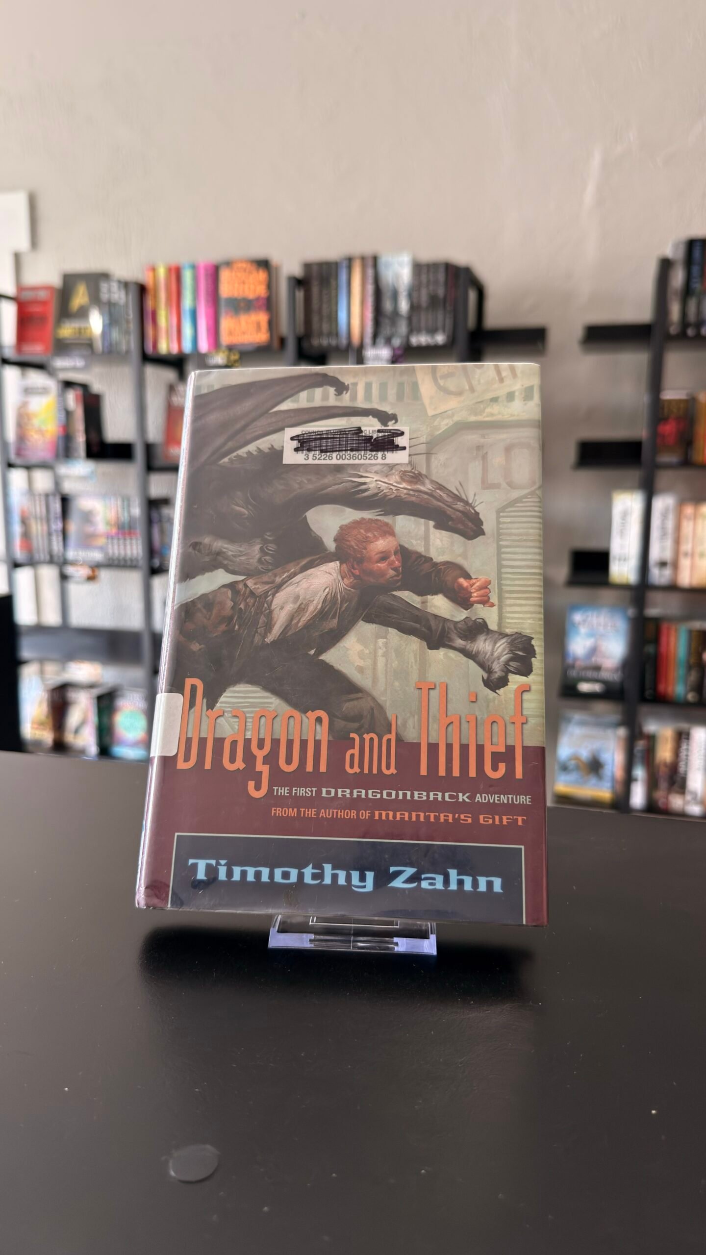 Timothy Zahn has been entertaining science fiction readers young and old for more than twenty years with exciting, thought-provoking adventures; now, with “Dragon and Thief” he offers his first new series in a number of years, one that’s sure to delight all his fans and gain new readers as well. It’s called Dragonback because Jack Morgan has a dragon on his back–literally. We think of dragons as enormous fire-breathing, flying creatures of myth. But in Jack’s universe, dragons–or, more precisely, the dragon like K’da–are big, but they also depend on being in a symbiotic relationship with a humanoid. And when the K’da warrior known as Draycos is the sole survivor of a space battle and must find a new bondmate or die, for better or worse Jack happens to be the only available host.
