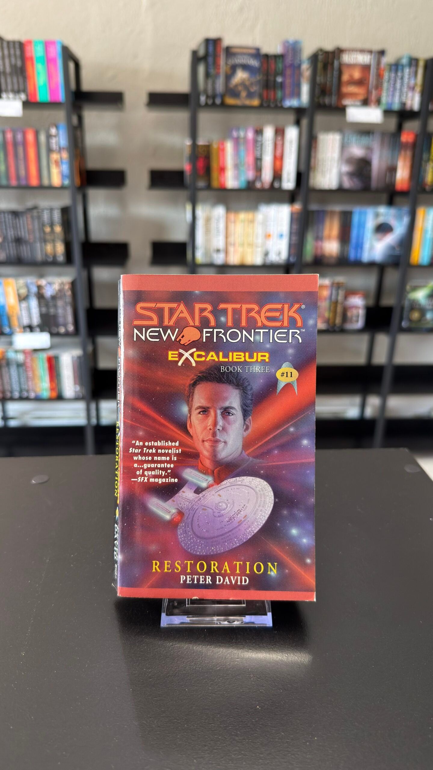The ever resourceful Captain Mackenzie Calhoun abruptly finds himself at a loss–marooned on he primitive outback world of Yakaba after his ship, Excalibur, is destroyed by deadly sabotage. He is separated from his loyal first officer, Shelby, who has gone one to command the Exeter and is certain that Calhoun has been blasted into oblivion. On Yakaba’s dry frontier, Calhoun meets and befriends Shula, an extraordinary woman beset by enemies trying to control or destroy her and her gift–summoning rain to her parched homeland.