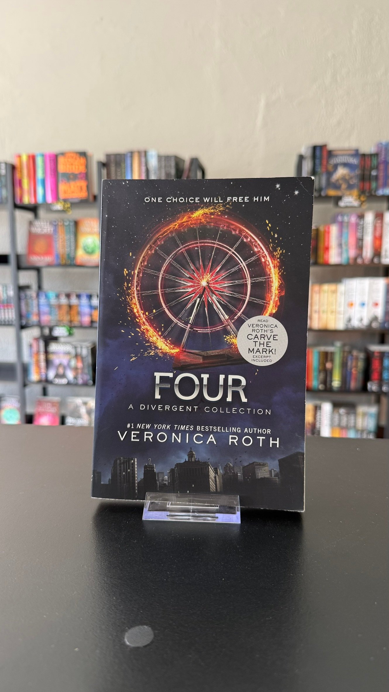 Complete your Divergent library with Four! Fans of the Divergent trilogy by #1 New York Times bestselling author Veronica Roth will be thrilled by Four: A Divergent Collection, a companion volume that includes four pre-Divergent stories plus three additional scenes from Divergent, all told from Tobias’s point of view. This collection also makes a great pick for fans of the blockbuster movies who want to delve deeper into the character played by Theo James. Readers first encountered Tobias as “Four” in Divergent. His voice is an integral part of Allegiant. Readers will find more of this charismatic character’s backstory told from his own perspective in Four: A Divergent Collection. When read together, these long narrative pieces illuminate the defining moments in Tobias’s life. The first three pieces in this volume—”The Transfer,” “The Initiate,” and “The Son”—follow Tobias’s transfer from Abnegation to Dauntless, his Dauntless initiation, and the first clues that a foul plan is brewing in the leadership of two factions. The fourth story, “The Traitor,” runs parallel with the events of Divergent, giving readers a glimpse into the decisions of loyalty—and love—that Tobias makes in the weeks after he meets Tris Prior. Also includes three additional scenes from Divergent, told from Tobias’s point of view! And don’t miss The Fates Divide, Veronica Roth’s powerful sequel to the bestselling Carve the Mark!