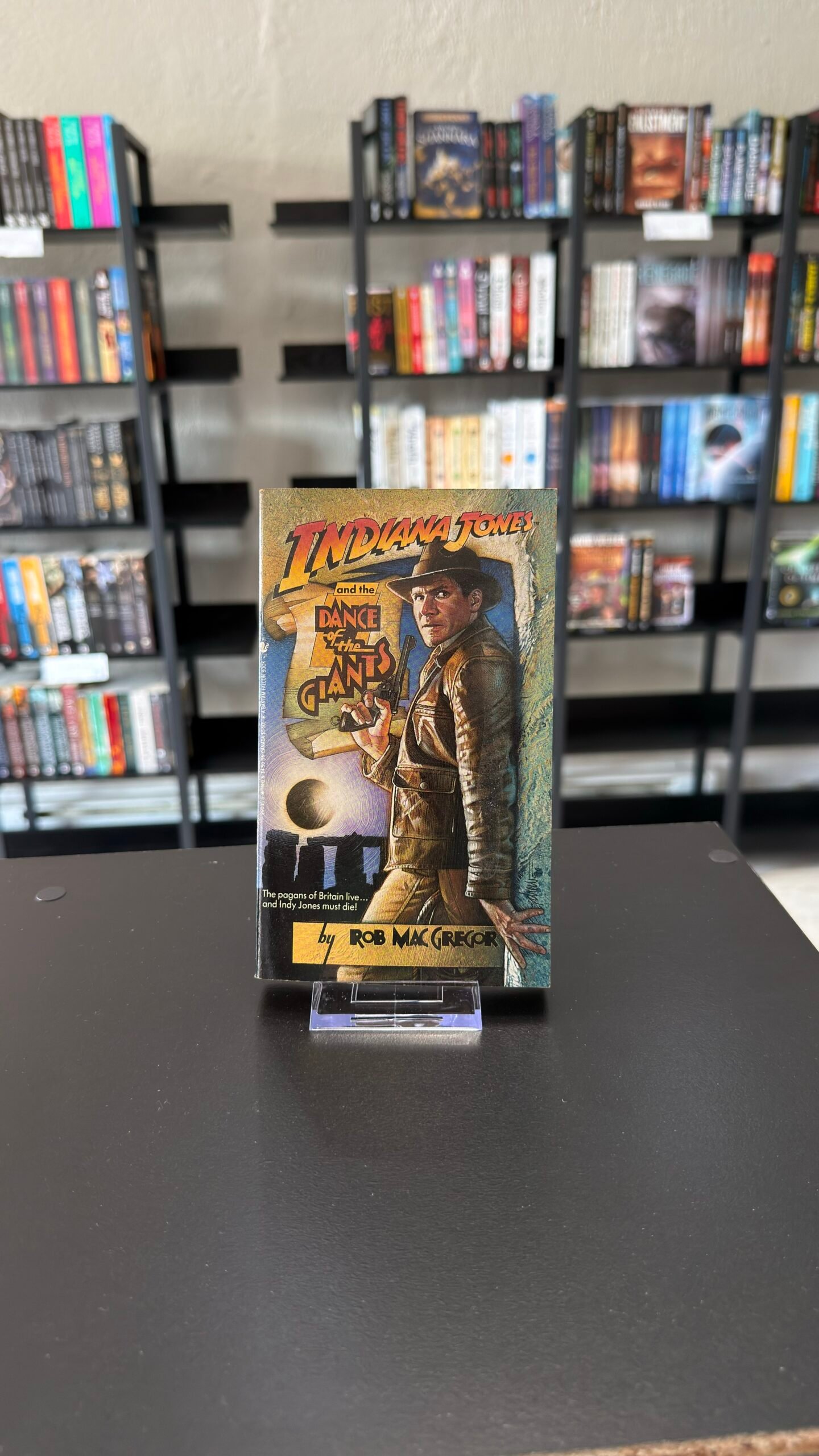 Indiana Jones has landed his first teaching post, in the archaeology department at London University. His brightest–and prettiest–student is a twenty-year-old Scottish girl, Deirdre Campbell, who claims she’s uncovered a golden scroll, proof of the true existence of Merlin, sorcerer of myth and legend. Indy’s intrigued by the thesis . . . and by Deirdre. So, too, is member of Parliament Adrian Powell. He’s seeking to resurrect the ancient order of the Druids, whose secrets of power could pave his way to world conquest. But first he needs the scroll . . . and he’s willing to kill to get it. Where there’s magic, mystery, and murder, Indy goes to the head of the class. Dropping his books and picking up his bullwhip, he joins Deirdre on an action-packed chase across Britain, from the peril-filled caves of Scotland to the savage dance of the giants at Stonehenge–where Merlin’s secret will finally be revealed. But not before Indy gets a lesson in love from Deirdre . . . and a lesson in hate from a maniac who means to rule the world.