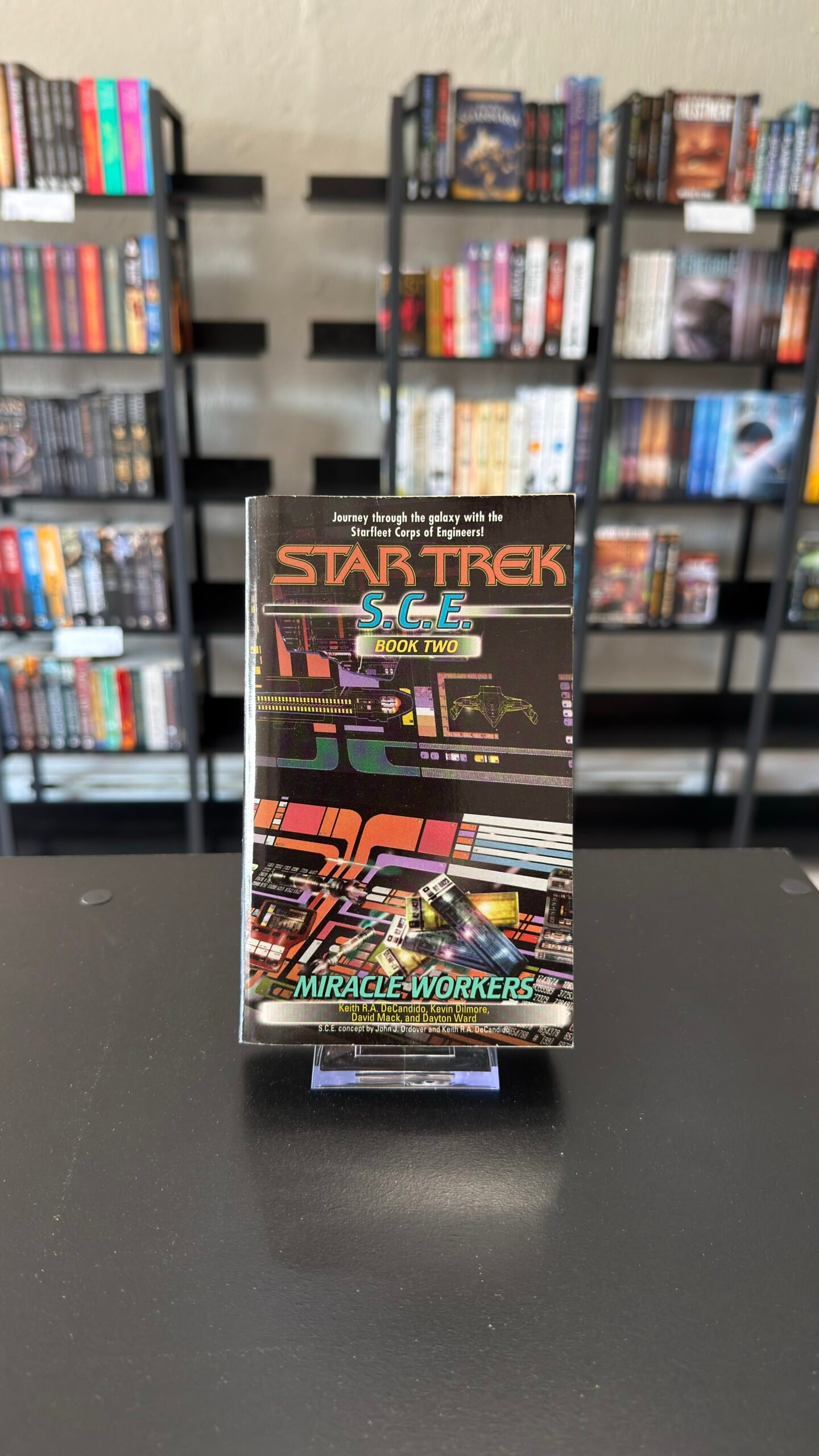 Overseen by Captain Montgomery Scott from his office at Starfleet Headquarters, the S.C.E. crew put their lives on the line to rescue a space station from catastrophe, and face off against a deadly alien race of technology thieves with the aid of Lieutenant Nog from Space Station “Deep Space 9” (TM).