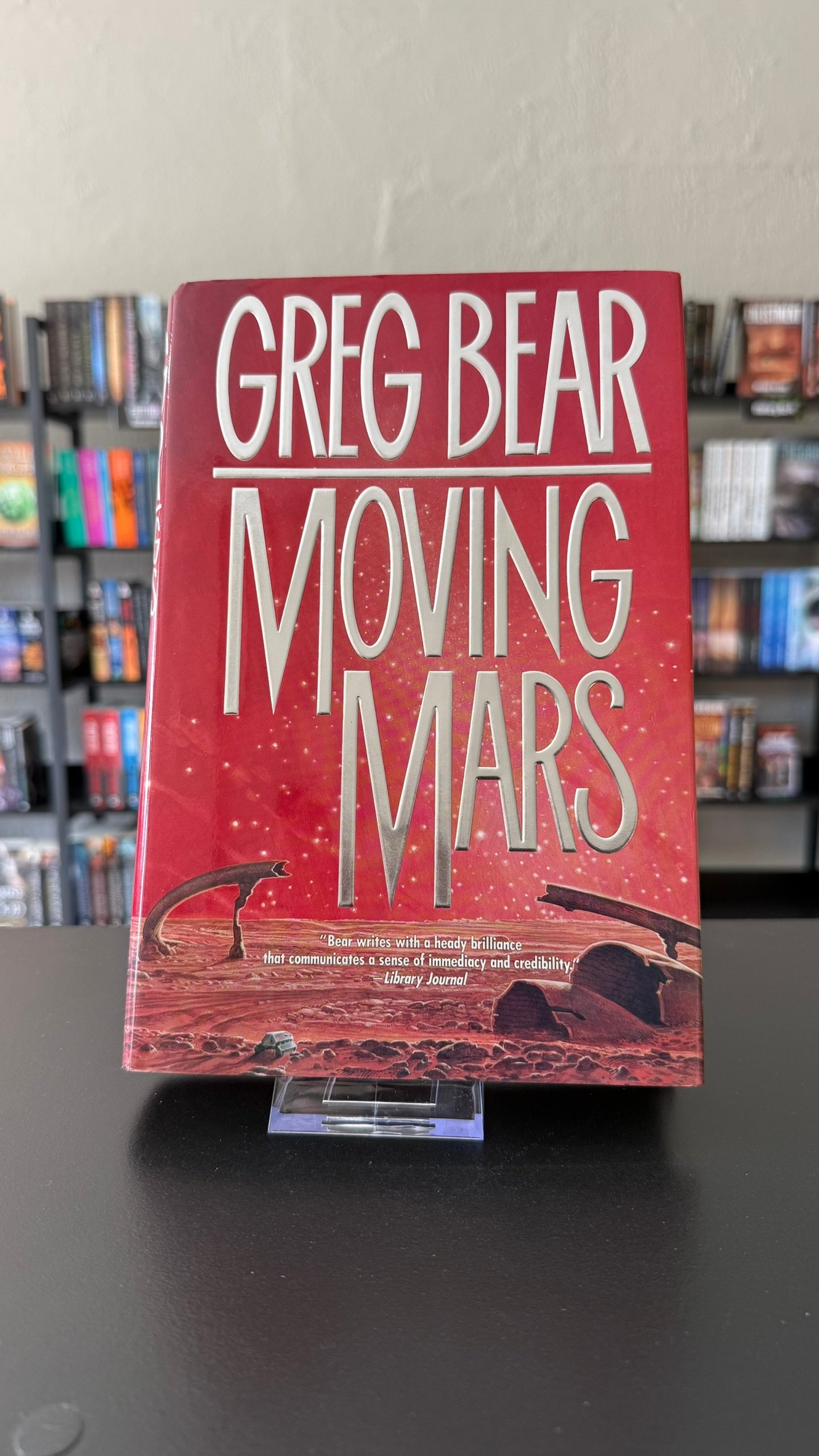 In a scenario based on the colonization of our neighboring planet by corporate interests, discontent on the part of the second and third generations of the original colonists lays the groundwork for a revolution destined to last for decades. 30,000 first printing.