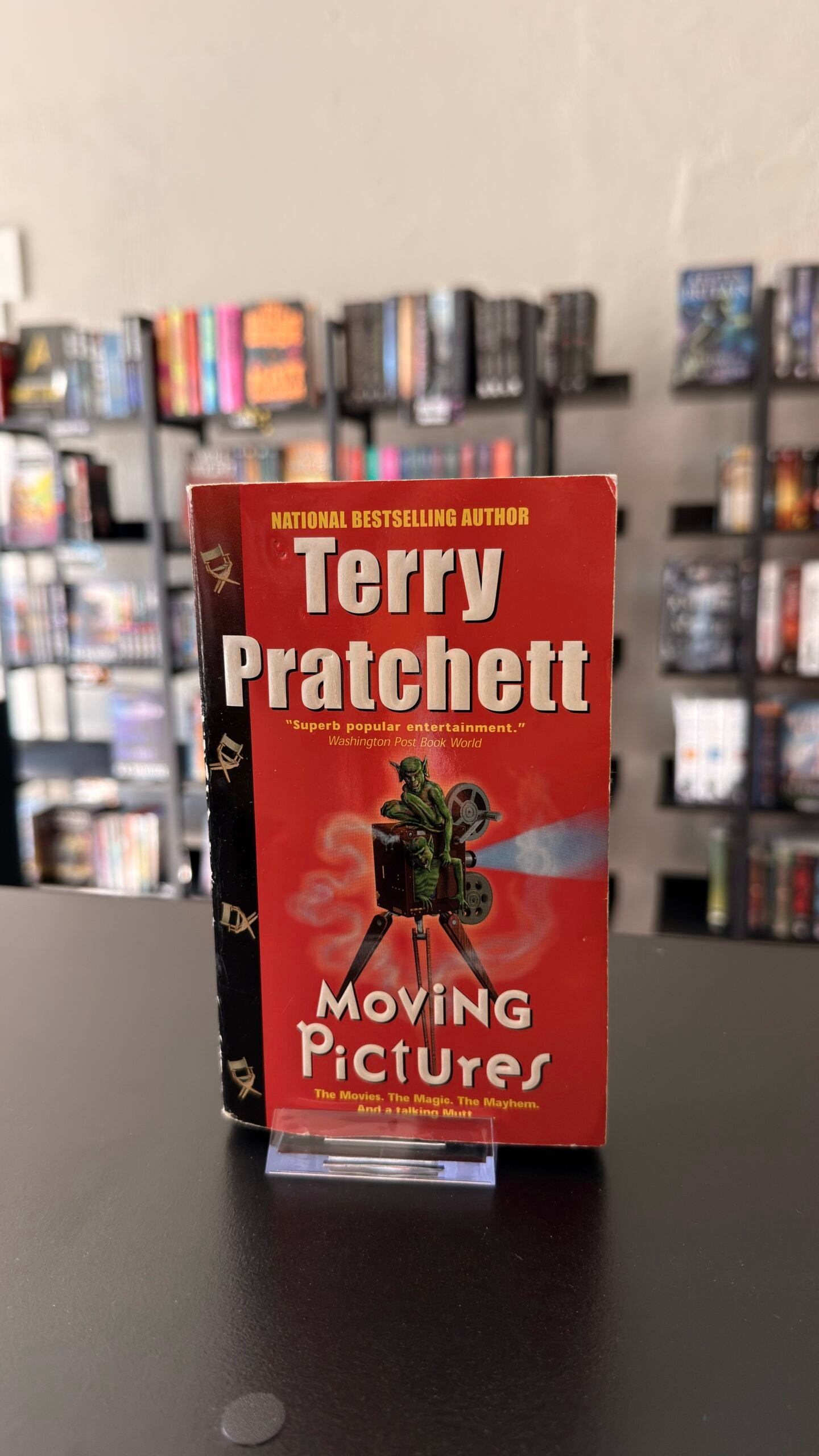 But the click click of moving pictures isn’t just stirring up dreams inside Discworld. Holy Wood’s magic is drifting out into the boundaries of the universes, where raw realities, the could-have-beens, the might-bes, the never-weres, the wild ideas are beginning to ferment into a really stinky brew. It’s up to Victor and Gaspode the Wonder Dog (a star if ever one was born!) to rein in the chaos and bring order back to a star struck Discworld. And they’re definitely not ready for their close-up!