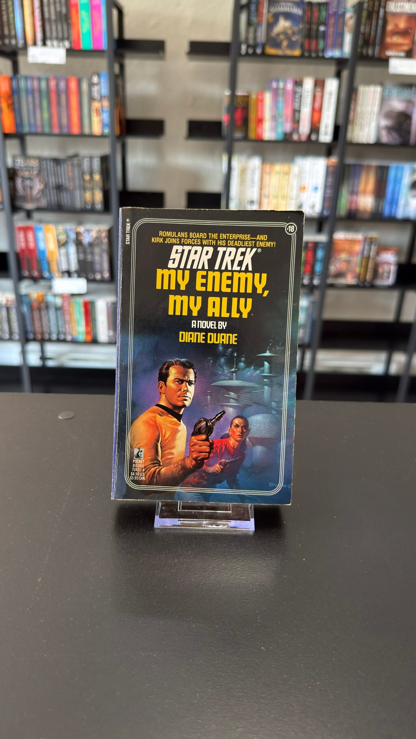 Ael t’ Rlailiiu is a noble and dangerous Romulan Commander. But when the Romulans kidnap Vulcans to genetically harness their mind power, Ael decides on treason. Captain Kirk, her old enemy, joins her in a secret pact to destroy the research laboratory and free the captive Vulcans. When the Romulans discover their plan, the Neutral Zone seethes with schemes and counter-schemes, sabotage and war.