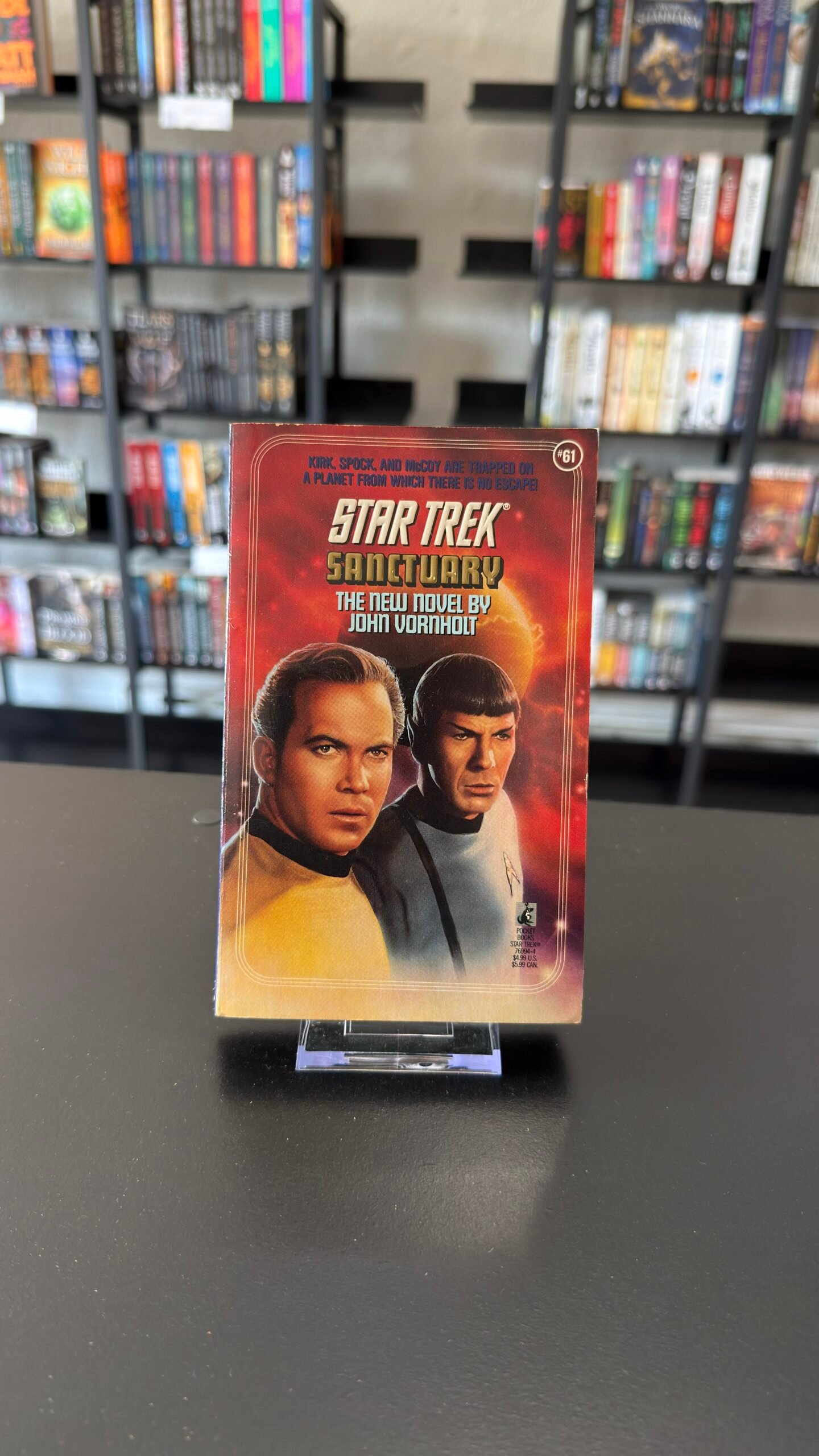 The crew of the “U.S.S. Enterprise” TM is assigned to capture a dangerous criminal named Auk Rex, and their pursuit takes them to an unexplored sector of space. Captain Kirk, Mr. Spock, and Dr. McCoy continue the pursuit in a shuttlecraft, following Auk Rex to the surface of the planet, Santuary. Kirk and his crew are locked in a life and death struggle on the mysterious planet, which harbors deadly secrets and never releases its visitors.