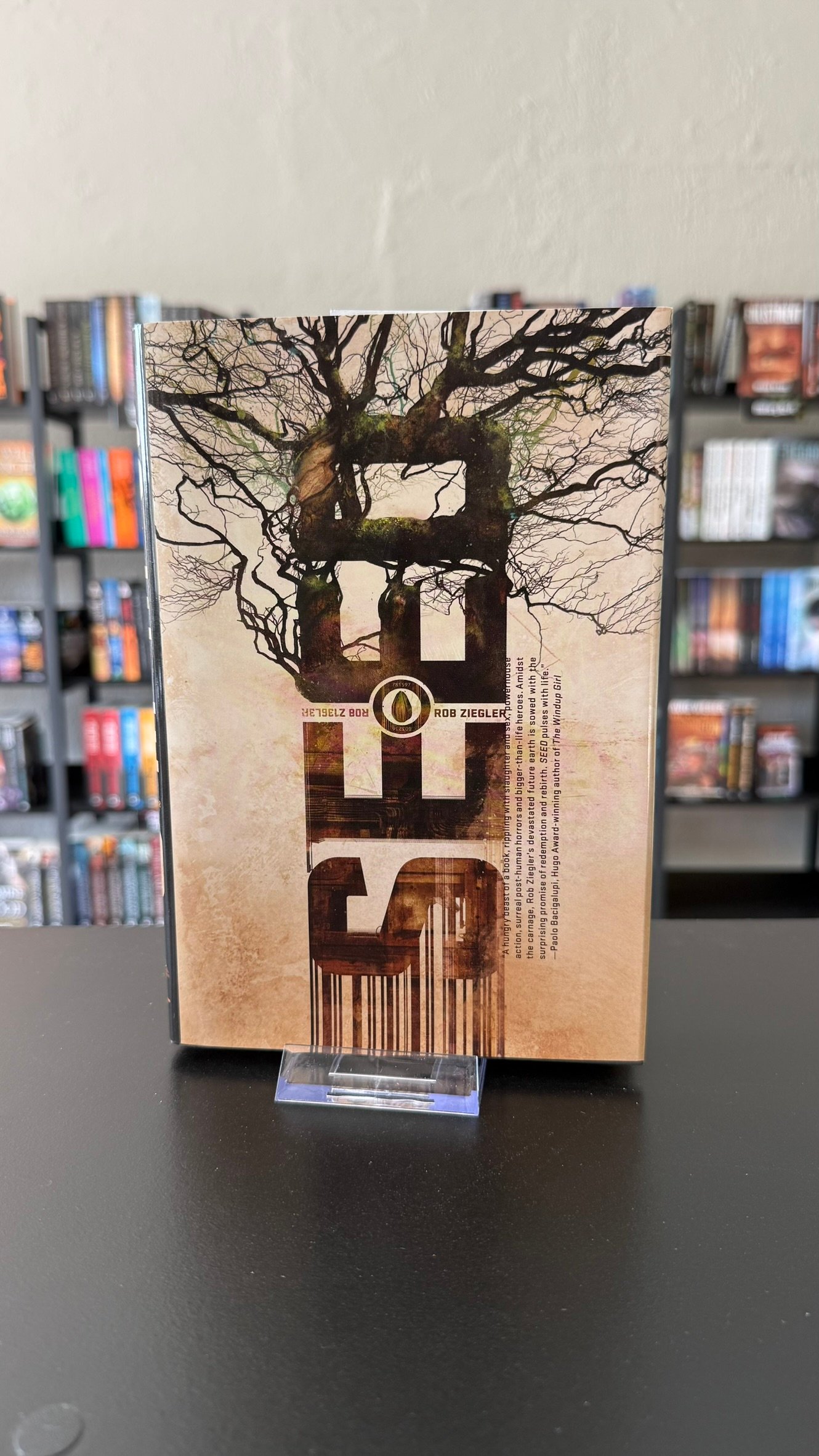 In this new world, there is a new power. Satori is more than just a corporation, she is an intelligent, living city that grew out of the ruins of Denver. Satori bioengineers both the climate-resistant seed that feeds a hungry nation, and her own post-human genetic Designers, Advocates, and Laborers. What remains of the United States government now exists solely to distribute Satori seed; a defeated American military doles out bar-coded, single-use Satori seed to the nation’s starving citizens.