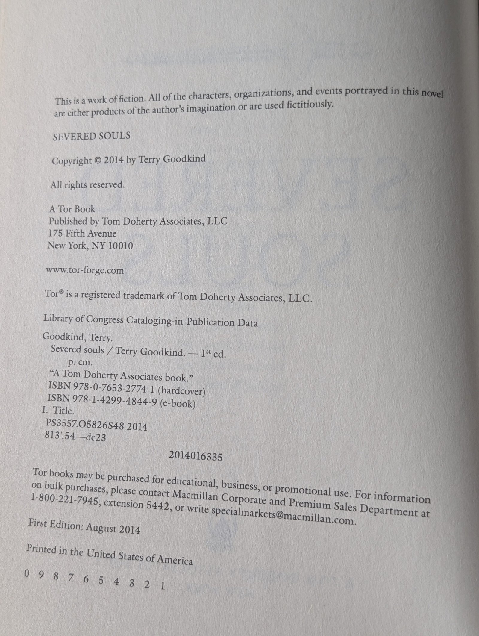 From Terry Goodkind, author of the Sword of Truth series, comes Severed Souls, a New York Times best selling novel of Richard Rahl, Kahlan Amnell, and their world.