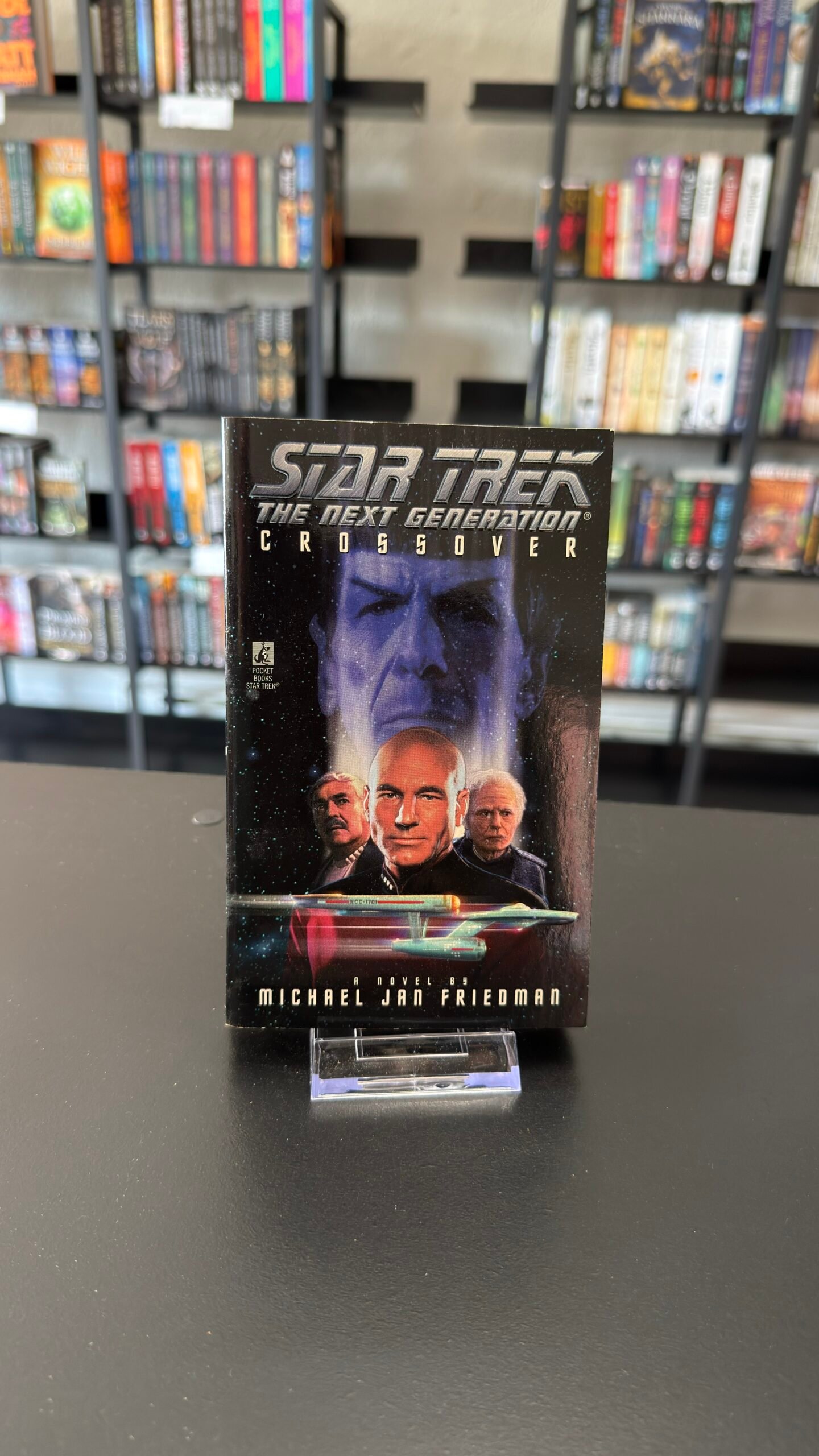Fearful that Spock’s knowledge of Federation security will fall into enemy hands, Starfleet dispatches its best ship, the “U.S.S. Enterprise”TM 1701-D, and most respected captain, Jean-Luc Picard, to secure the hostages’ release. Spock’s former shipmate from the original “Starship Enterprise”TM, Ambassador McCoy — over one hundred forty years old, but still as feisty as ever — is brought in to consult on the negotiations.