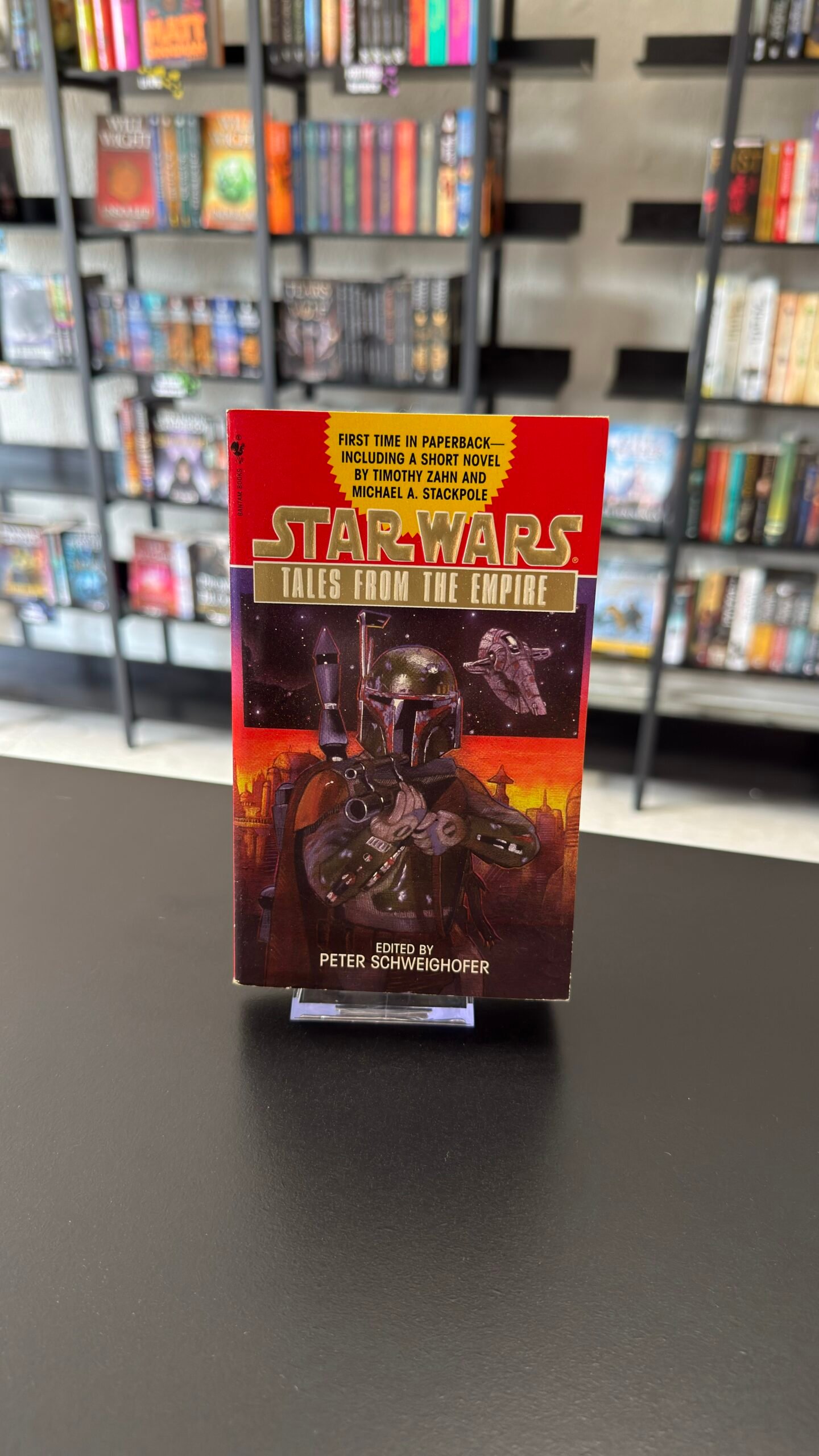 Culled from the pages of the Star Wars Adventure Journal, one of the most popular Star Wars magazines in the field today, comes this exciting new short-story collection. Here are stories from such award-winning and New York Times bestselling authors as Timothy Zahn, Michael A. Stackpole and Kathy Tyers as well as exciting newcomers, including Erin Endom, Laurie Burns, and Patricia A. Jackson. From the desperate flight of a civilian mail courier carrying vital Rebel intelligence through an Imperial blockade, to a suicidal commando raid on an impregnable Imperial prison, to a Corellian smuggler mysteriously hired by an actor turned Jedi Knight turned Imperial assassin for one final transformation, these tales capture all the high adventure, imaginative genius, and nonstop action that are the hallmarks of the Star Wars saga. What’s more, the centerpiece of this magnificent collection is the short novel Side Trip, the first-ever collaboration between Timothy Zahn and Michael A. Stackpole, in which a freighter smuggling arms for the Rebels is commandeered by an Imperial Star Destroyer led by a mysterious helmeted figure who claims to be the notorious bounty hunter Jodo Kast. It is all part of a devious plan that includes Hal and Corran Horn, who are working undercover to nail the infamous Corellian warlord Zekka Thyne. But one slip-up can get them all killed. Collected for the first time, Star Wars(r): Tales from the Empire is one book no fan will want to be without. (r), TM and (c) 1997 Lucasfilm Ltd. All rights reserved. Used under authorization.
