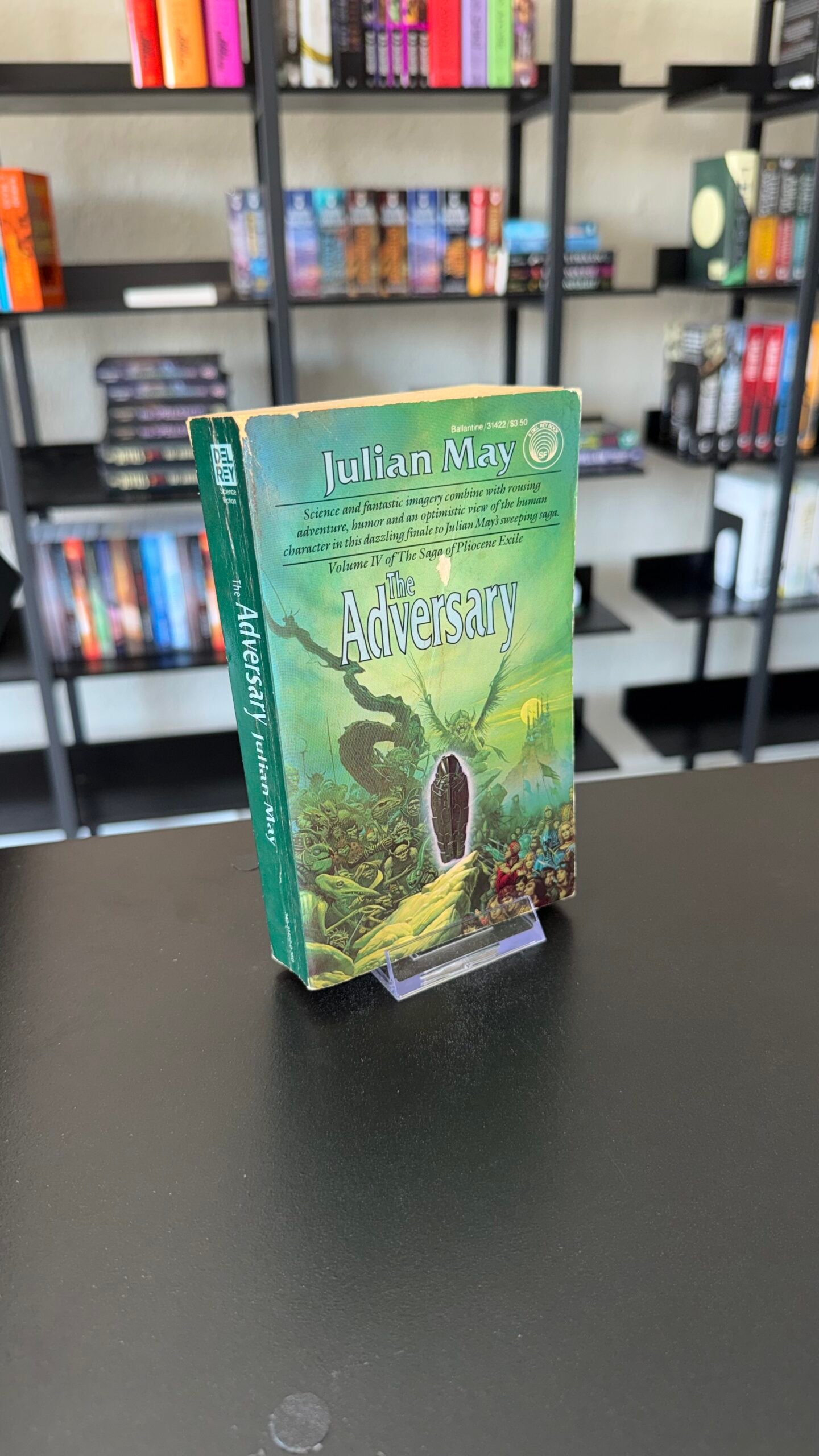 The fourth and final volume of The Saga of Pliocene Exile. Until the arrival of Aiken Drum, the 100,000 humans who had fled backward in time to Pliocene exile on Earth knew little but slavery to the Tanu — the humanoid aliens who came from another galaxy. But King Aiken’s rule is precarious, for the Tanu’s twisted brethren are secretly maneuvering to bring about his downfall. Worse — Aiken is about to confront a man of incredibly powerful Talents who nearly overthrew a galactic rule. He is Marc Remillard. Call him . . . The Adversary.