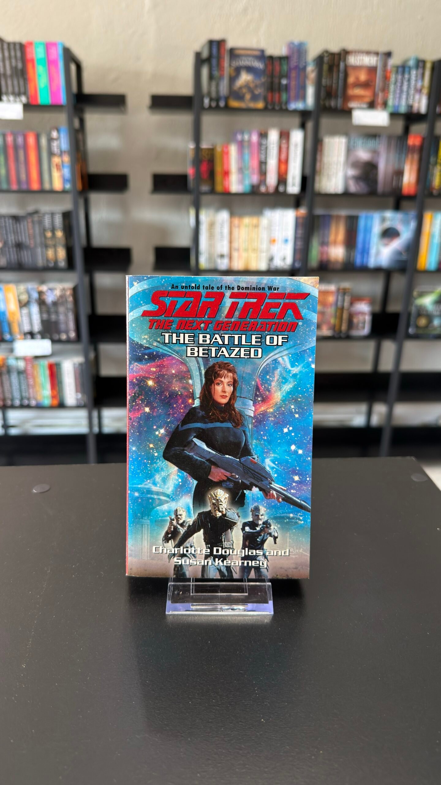 A breathtaking novel of suspense and action in which Deanna Troi risks all to save her home planet from the forces of the Dominion. As the war between the Dominion and the Federation rages across the Alpha Quadrant, Counselor Deanna Troi finds she is faced with more than she expected when she kidnaps a telepathic killer to bring to the aid of the resistance movement on the occupied planet of Betazed. At the same time, the Enterprise-E is leading a Starfleet attack against a Cardassian space station is orbit above the skies of Betazed. Dominion scientists are using the Betazed people as raw material in their experiments to create a more highly evolved Jem’Hadar — the genetically engineered warrior species which forms the core of the Dominion forces. What transpires is an awesome battle — including hostages and narrow escapes — with unexpected twists which lead to a truly explosive ending.