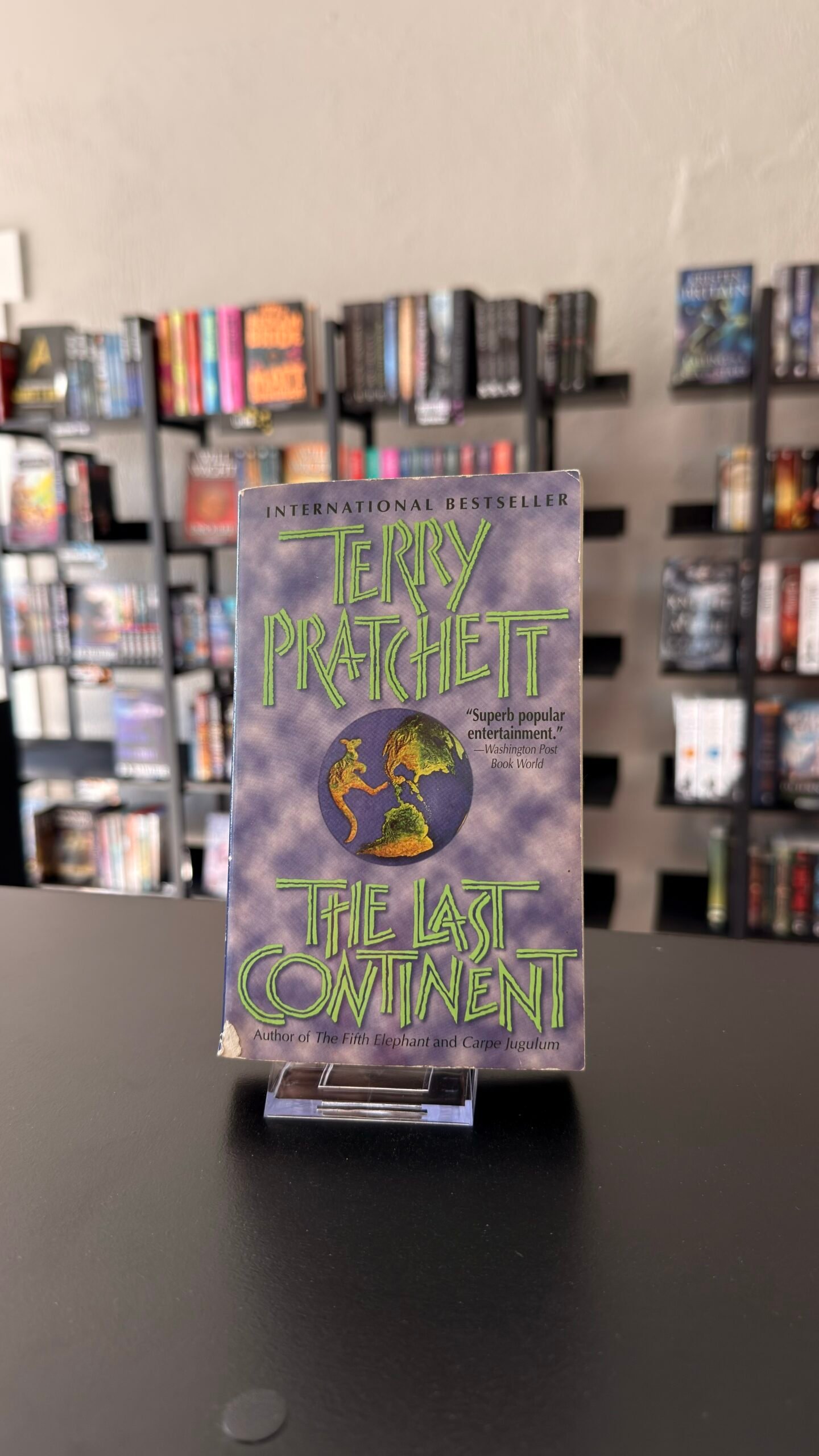 Discworld’s most inept wizard and his companion, Luggage, are eager to get home–but first Rincewind has to survive a pushy mystical kangaroo trickster named Scrappy and a mob of Fourecks hooligans determined to hang him. All his problems would be solved if he could just make it rain . . . for (maybe) the first time ever. And if the time-traveling professors from UU working on rescuing him can get to the right millennium . . .