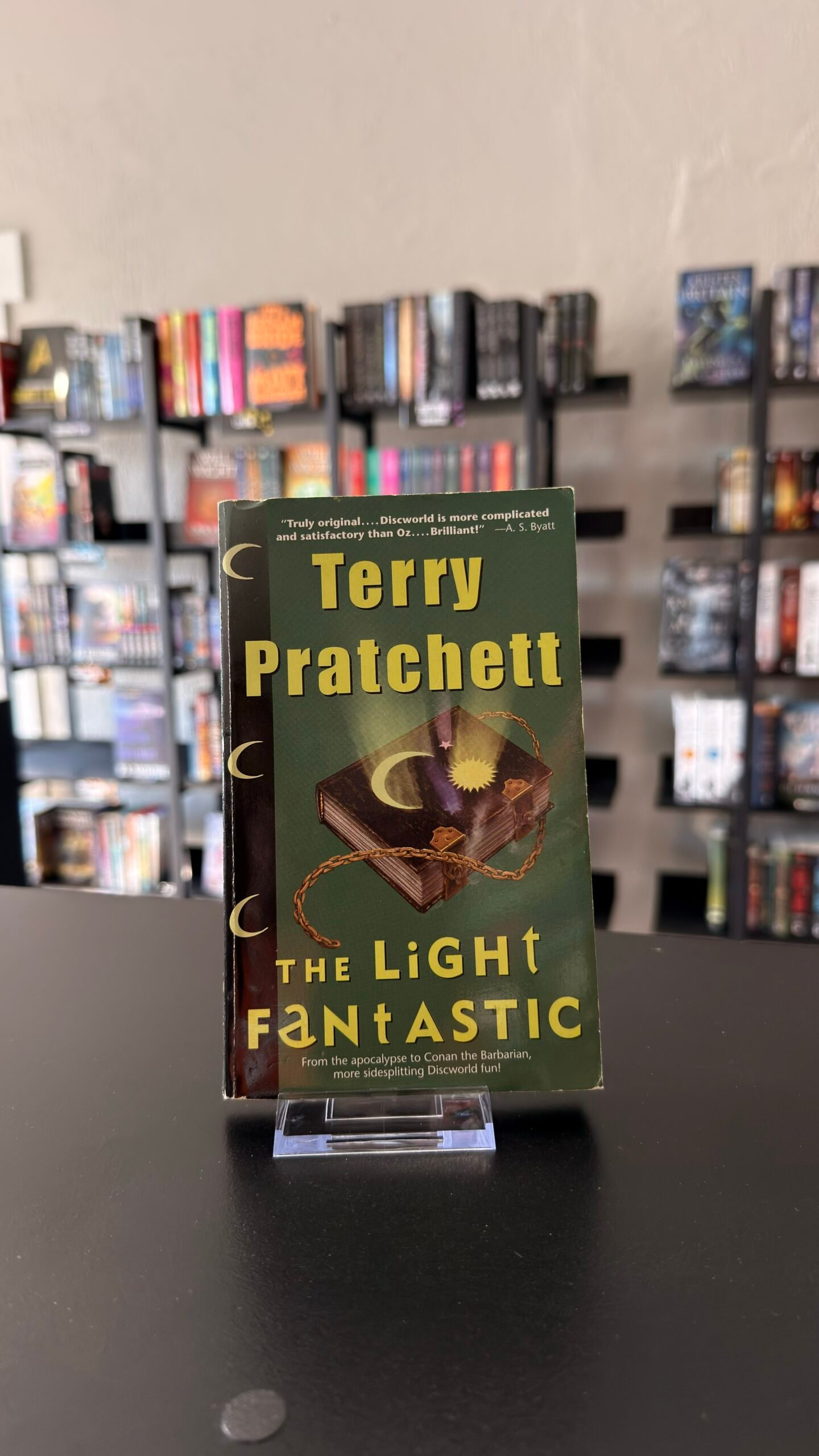 In The Light Fantastic only one individual can save the world from a disastrous collision. Unfortunately, the hero happens to be the singularly inept wizard Rincewind, who was last seen falling off the edge of the world…