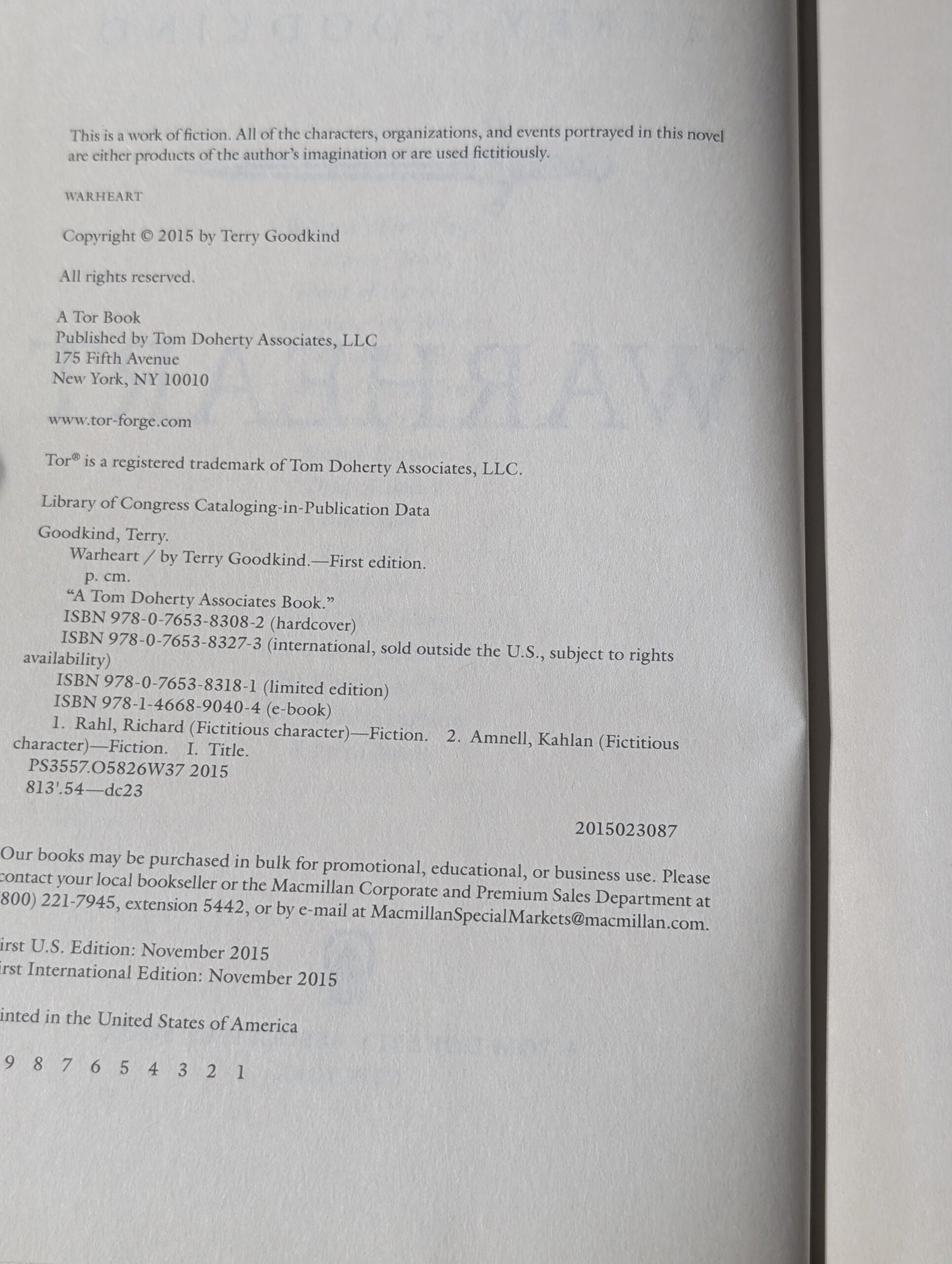Terry Goodkind’s New York Times bestseller, Warheart, is the direct sequel to, and the conclusion of, the story begun in The Omen Machine, The Third Kingdom, and Severed Souls.